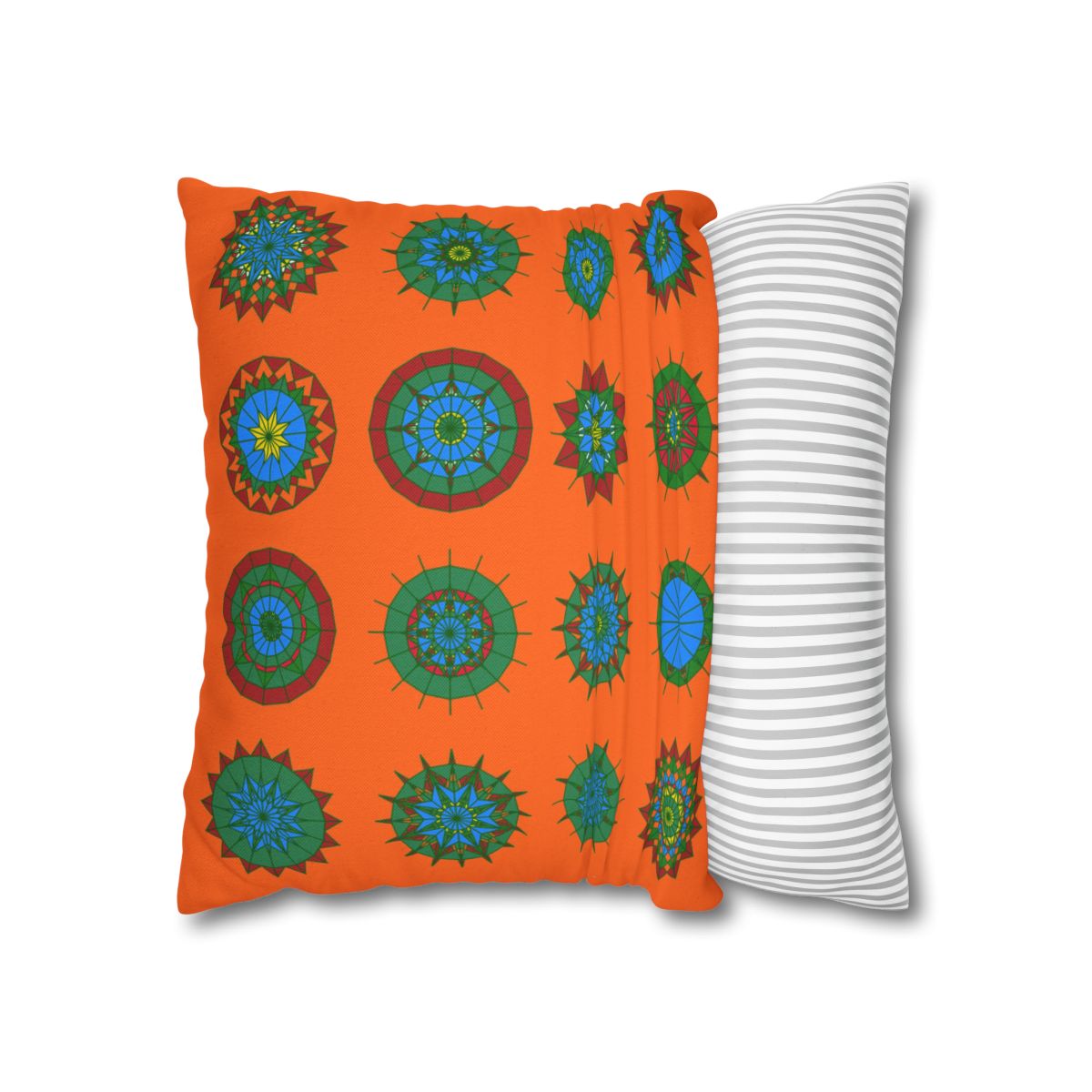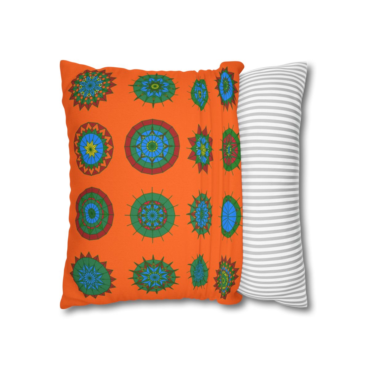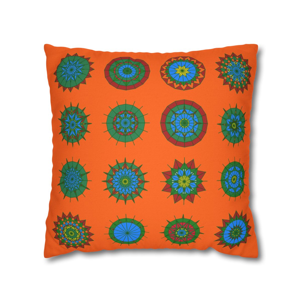 Christmas pillowcase for bed - Spun Polyester Square Pillowcase Mandala Art - Original Fine Art - Hand-drawn, Orange-Red