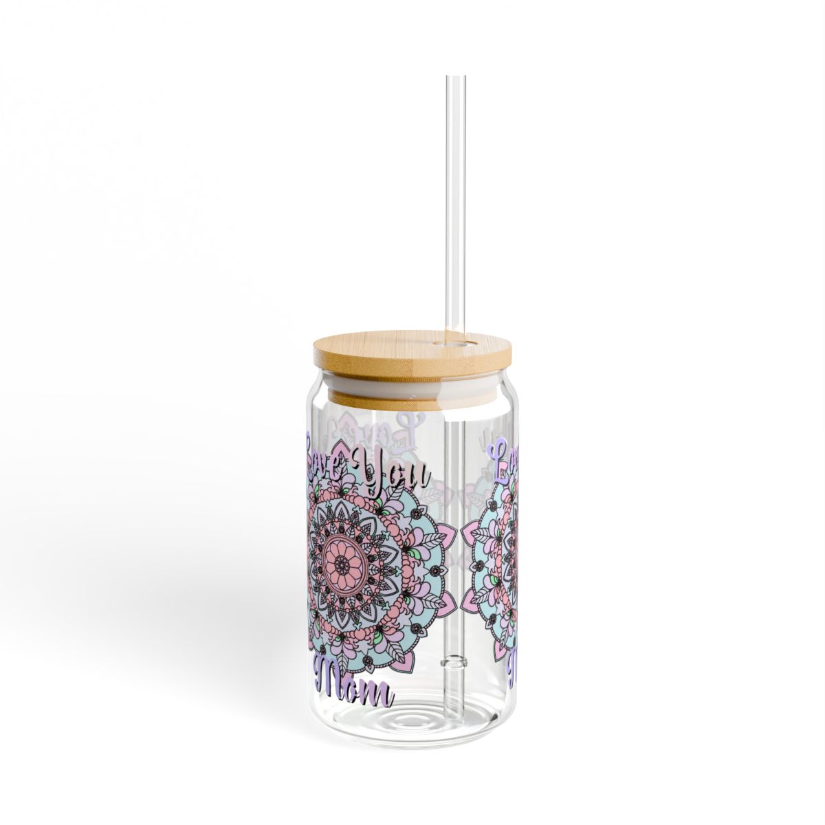 Celebrate Mom's special day with our elegant 16oz Sipper Glass, featuring a beautifully hand-drawn mandala design in soothing pastel colors and the loving phrase "Love Mom". This exquisite glass is perfect for her favorite cocktails, juices, or any beverage she enjoys.
