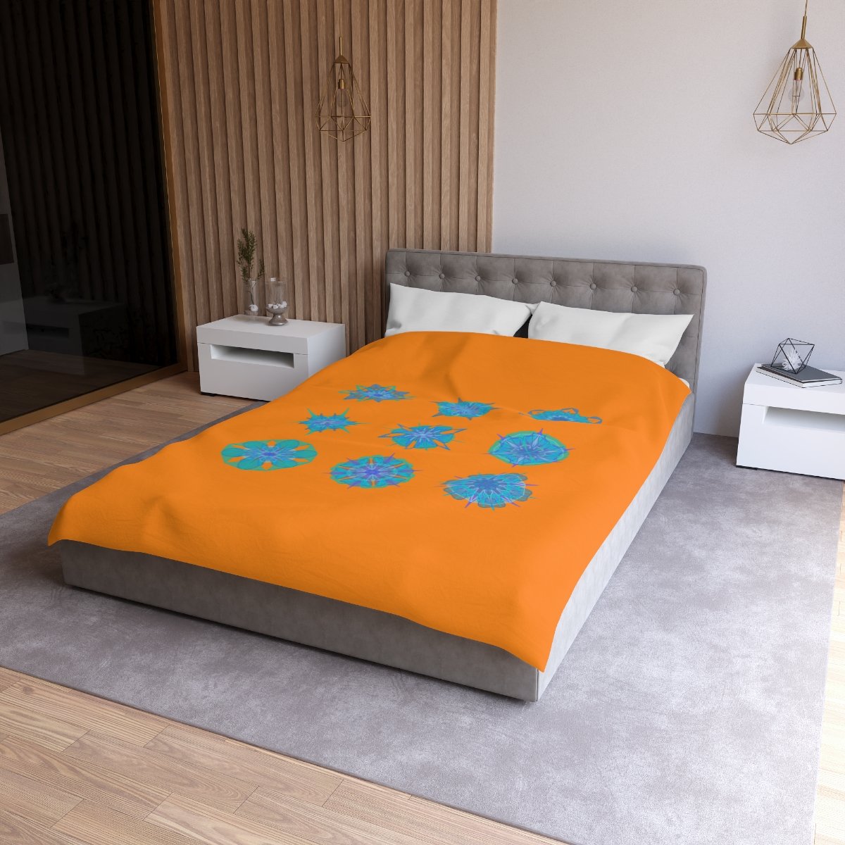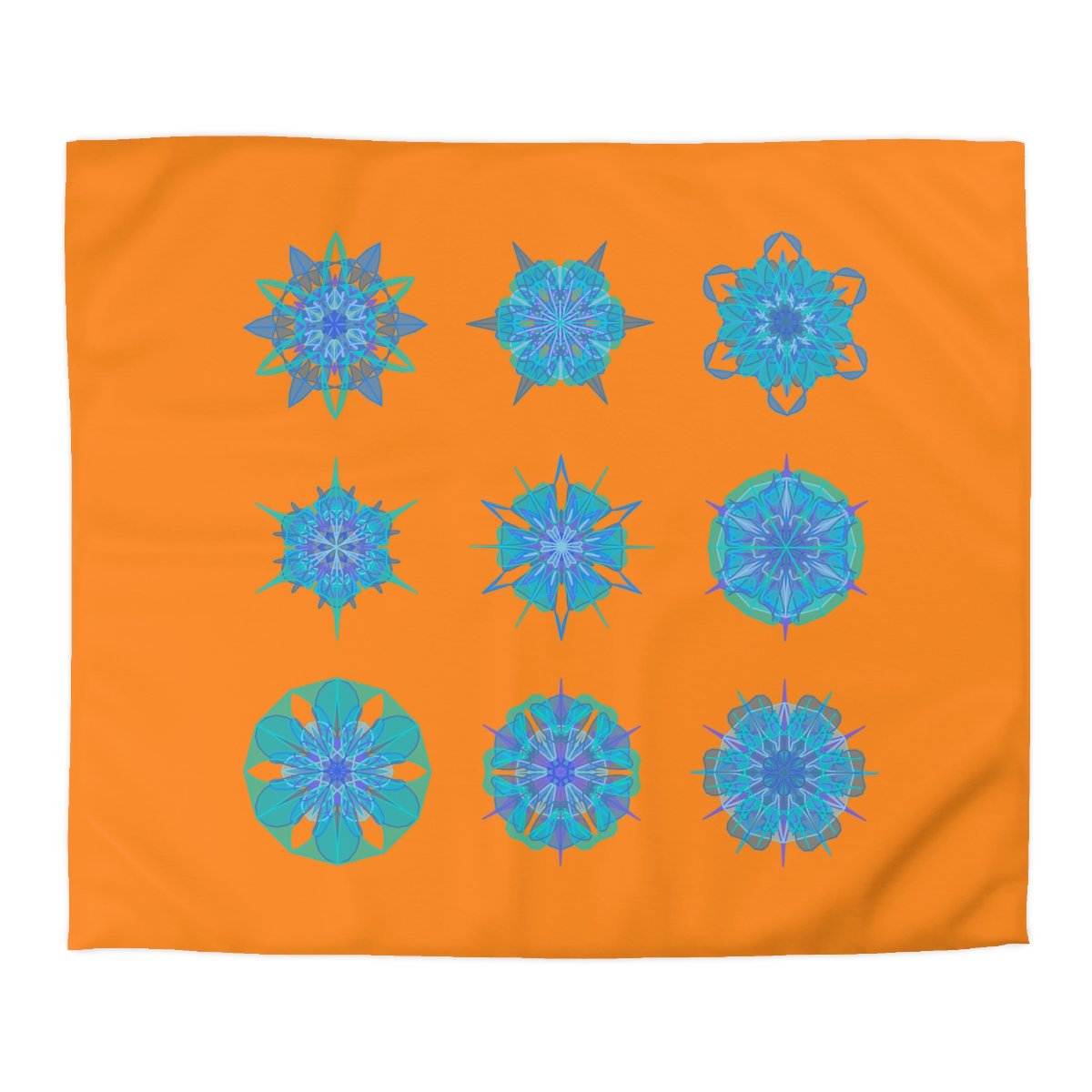 Christmas Snowflakes Microfiber Duvet Cover Mandala Art Drawn by Hand - Mandala on Sunset Glow background