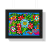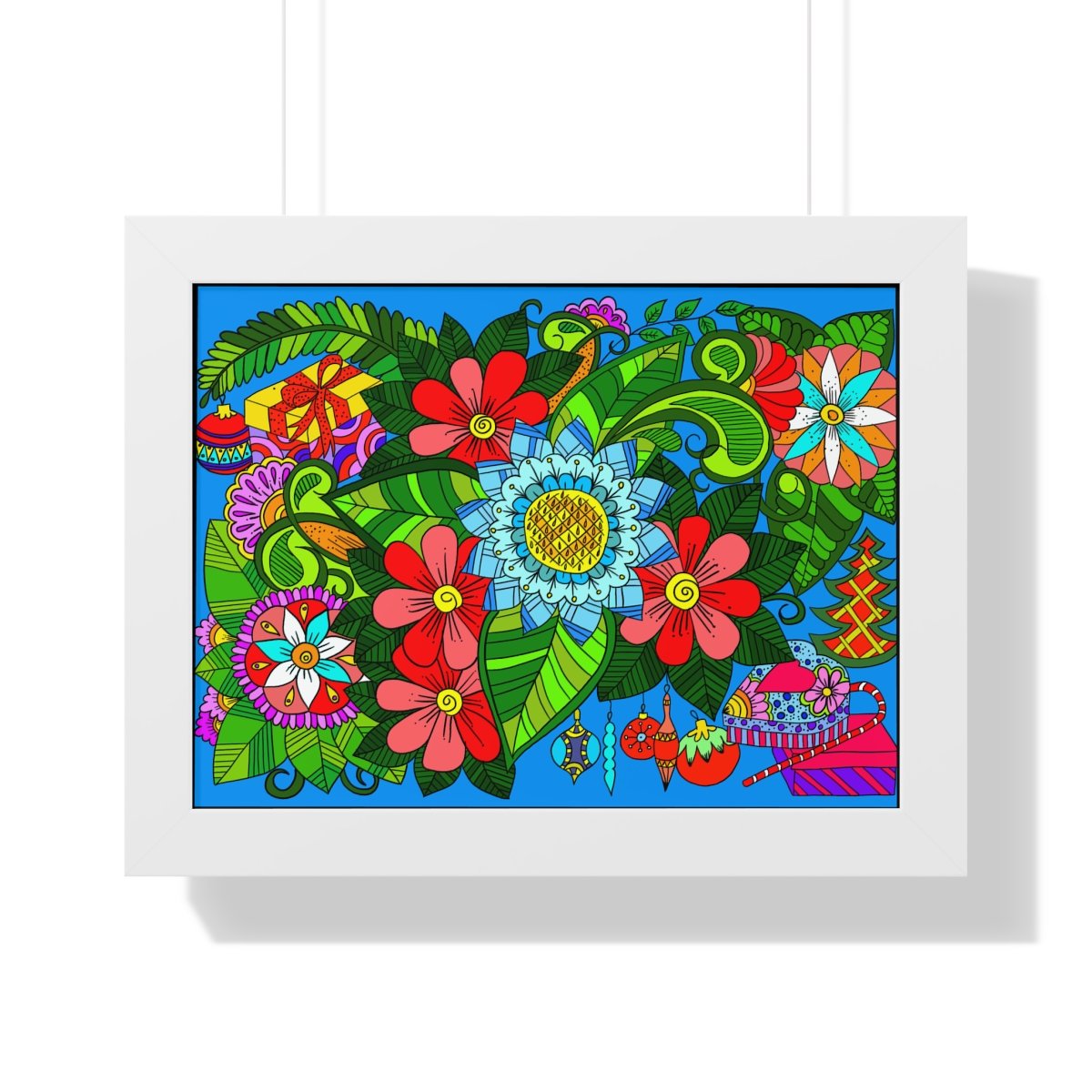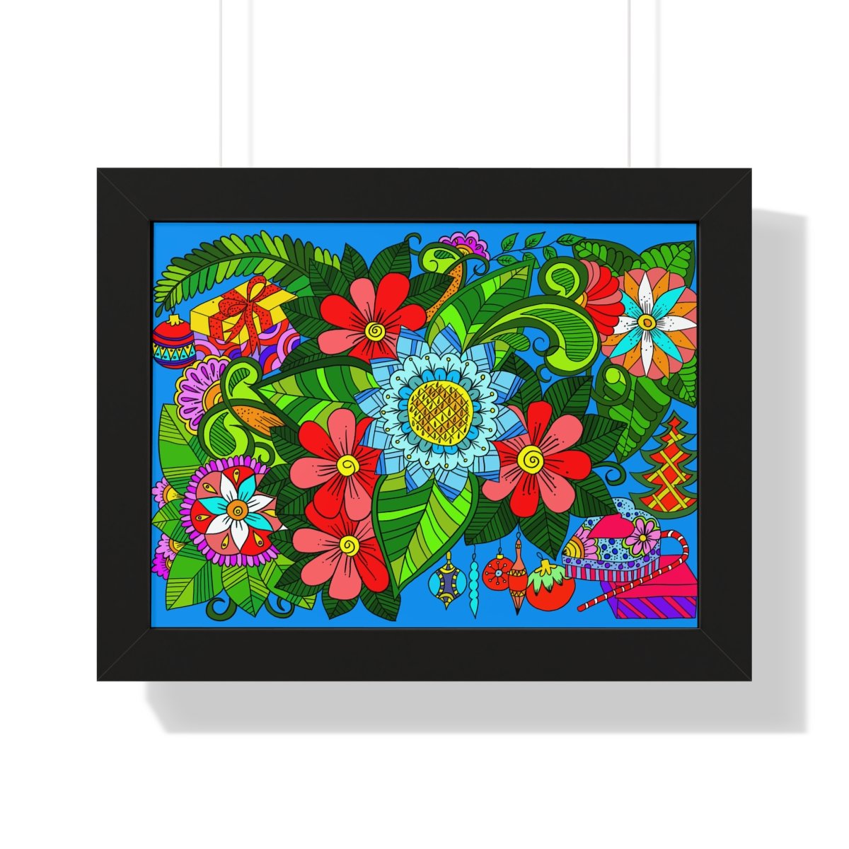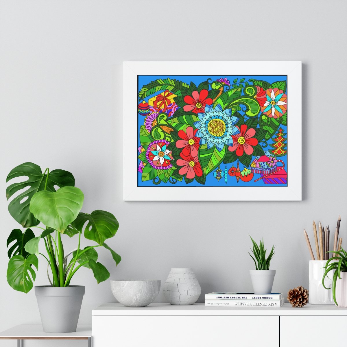 Original Fine Art Drawn by Hand, Framed Horizontal Poster, Flower Doodle