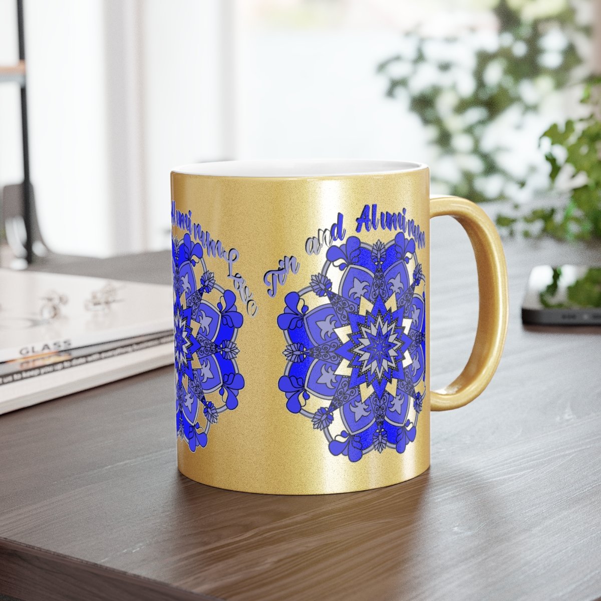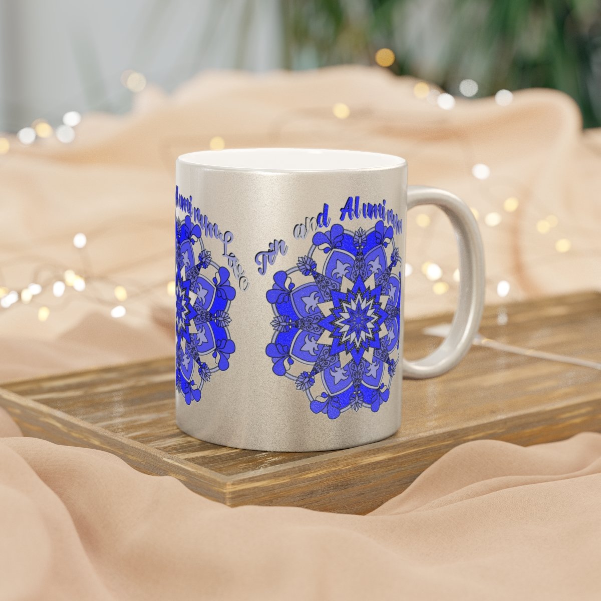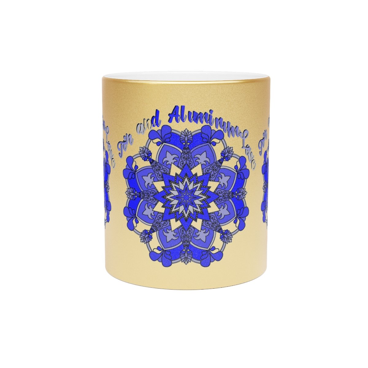 10th Anniversary Metallic Mug "Tin and Aluminum Love" - Hand Drawn Mandala Design in Gold & Silver | Perfect Tin/Aluminum Anniversary Gift