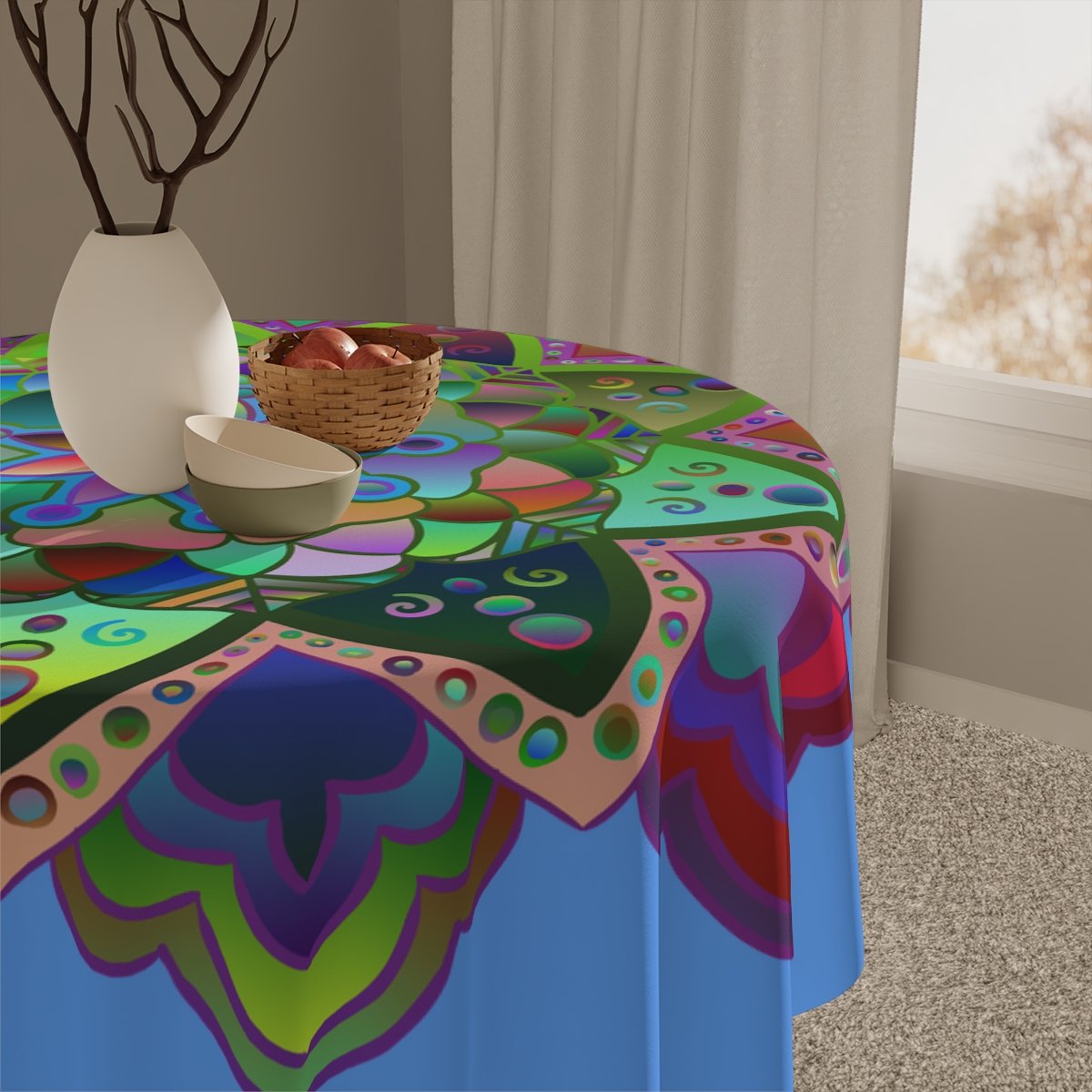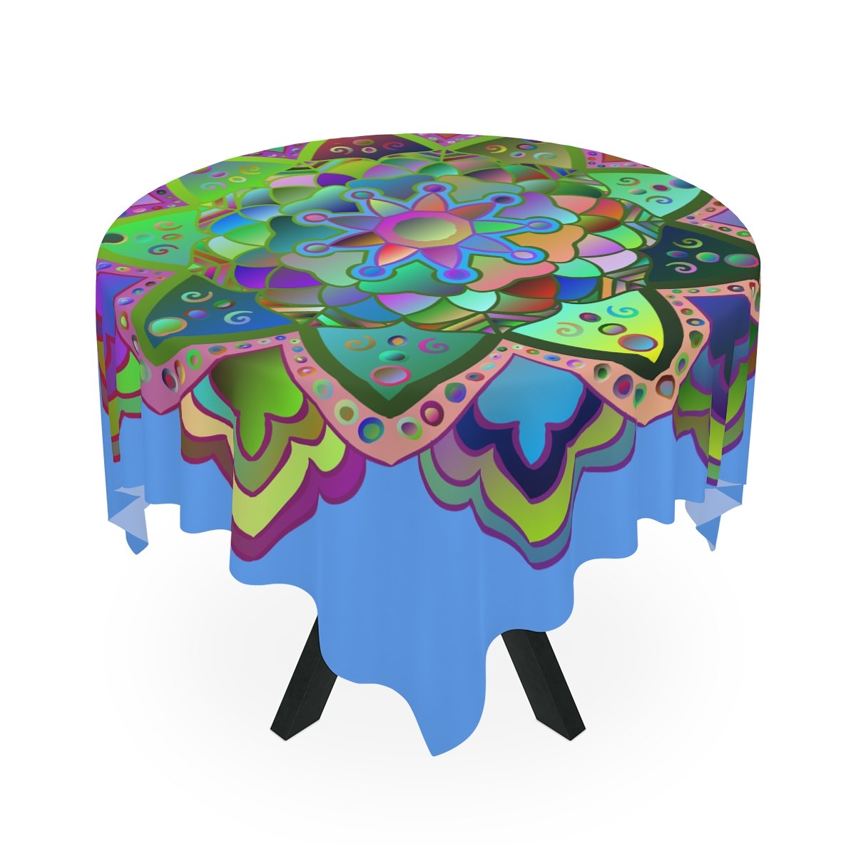 Uplift any home's aesthetics with this personalized tablecloth. Each Mandala Art is Drawn by Hand. Measuring in at 55.1" by 55.1", this personalized table cloth is a full-print product. What's more, the 100% polyester fabric construction makes it effortless to maintain like new.