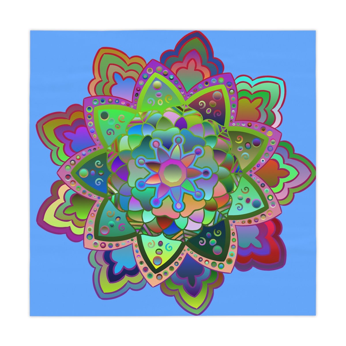 Tablecloth with Mandala Art Drawn by Hand, Light Blue, Square