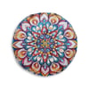 Add a mandala art touch to any resting area around the house with a Mandala Art round tufted floor pillow, which has a colorful mandala in the middle, that features bright colors. Shipped with its own filling, this floor pillow is as comfy as it is stylish. Bring your resting areas to life by adding a touch of stylish artwork and catchy colors.