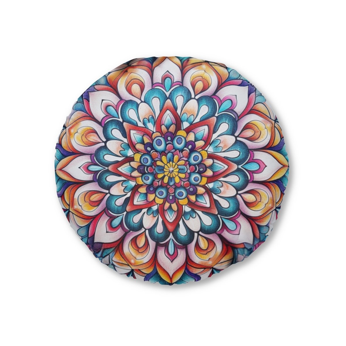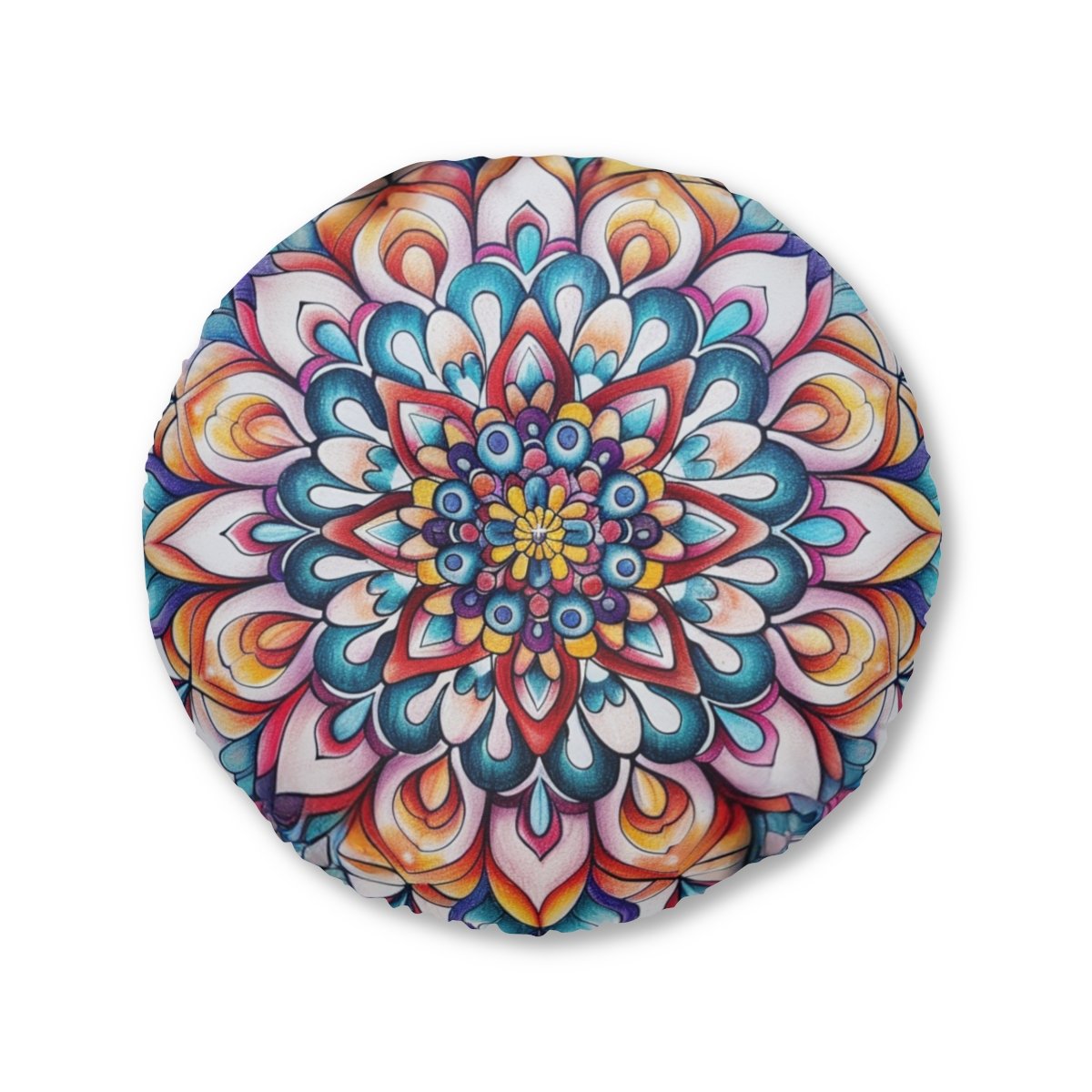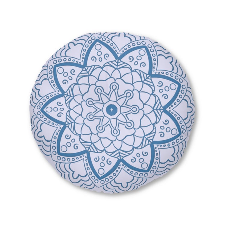 Mandala Art Floor Cushion Flowers - Tufted Floor Pillow, Round