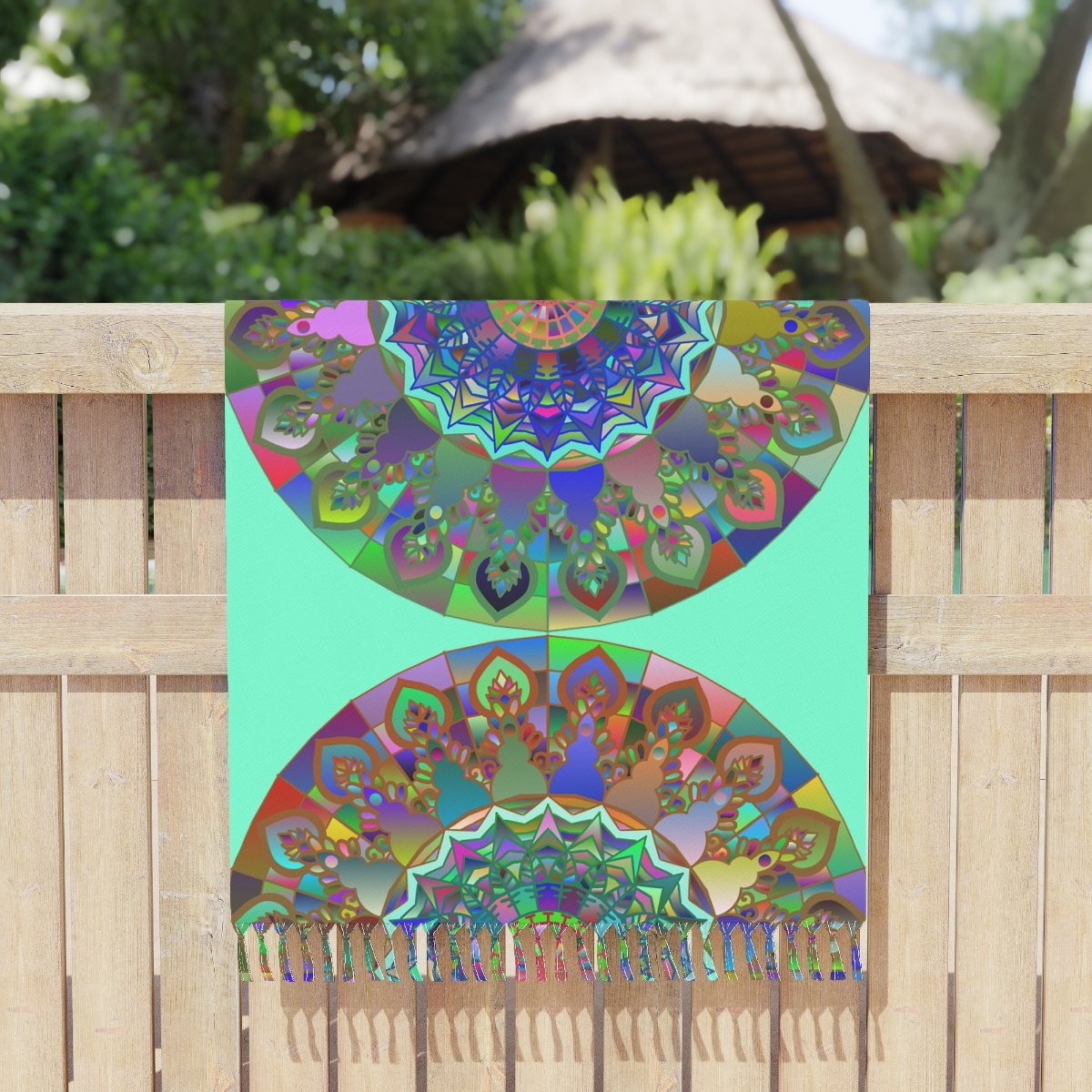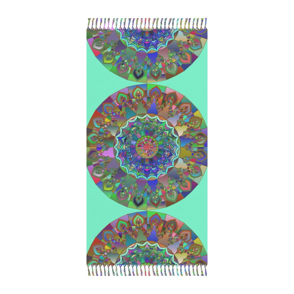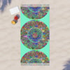 Boho Beach Cloth decorated with Mandala Art - Original Fine Art Hand-Drawn - Aquamarine