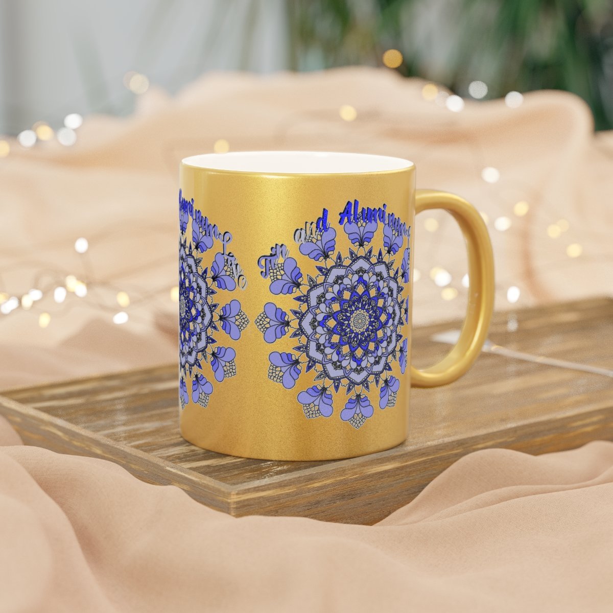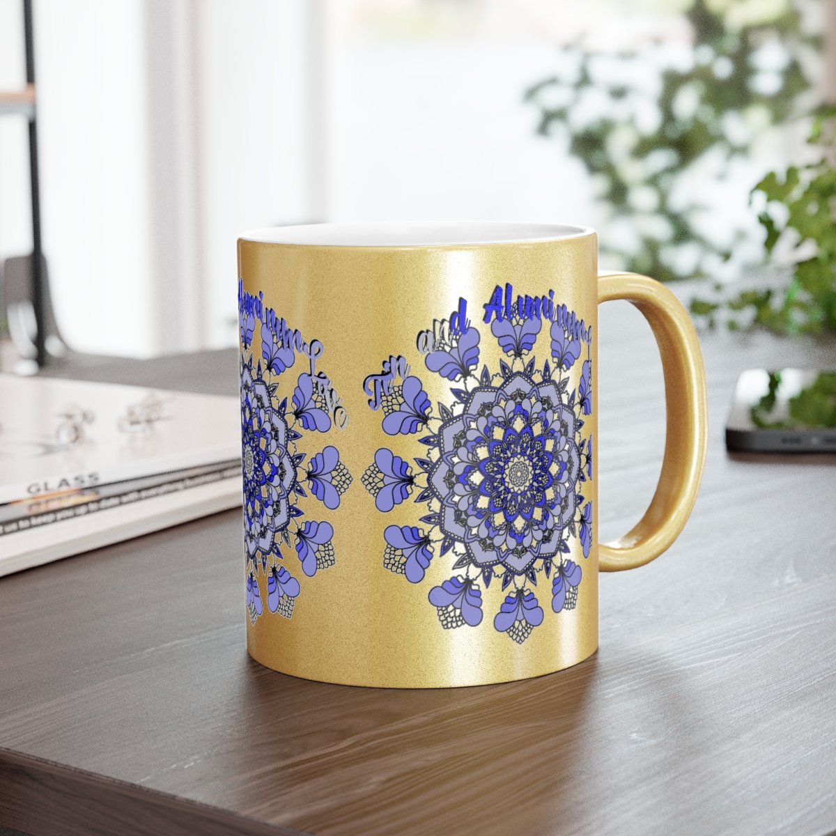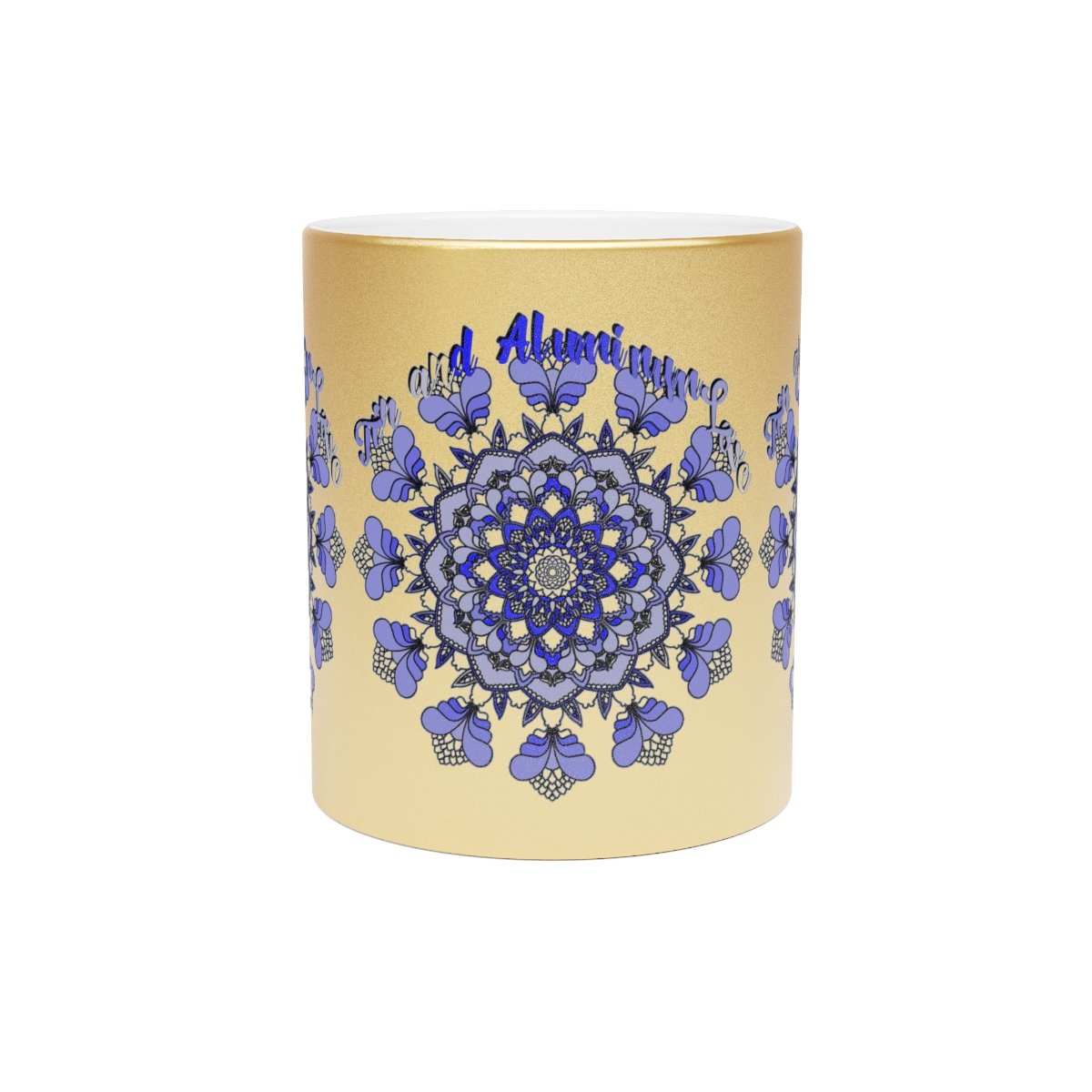 10th Anniversary Metallic Mug "Tin and Aluminum Love" - Hand Drawn Mandala Design in Gold & Silver | Perfect Tin/Aluminum Anniversary Gift