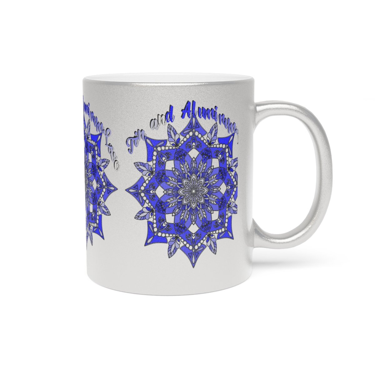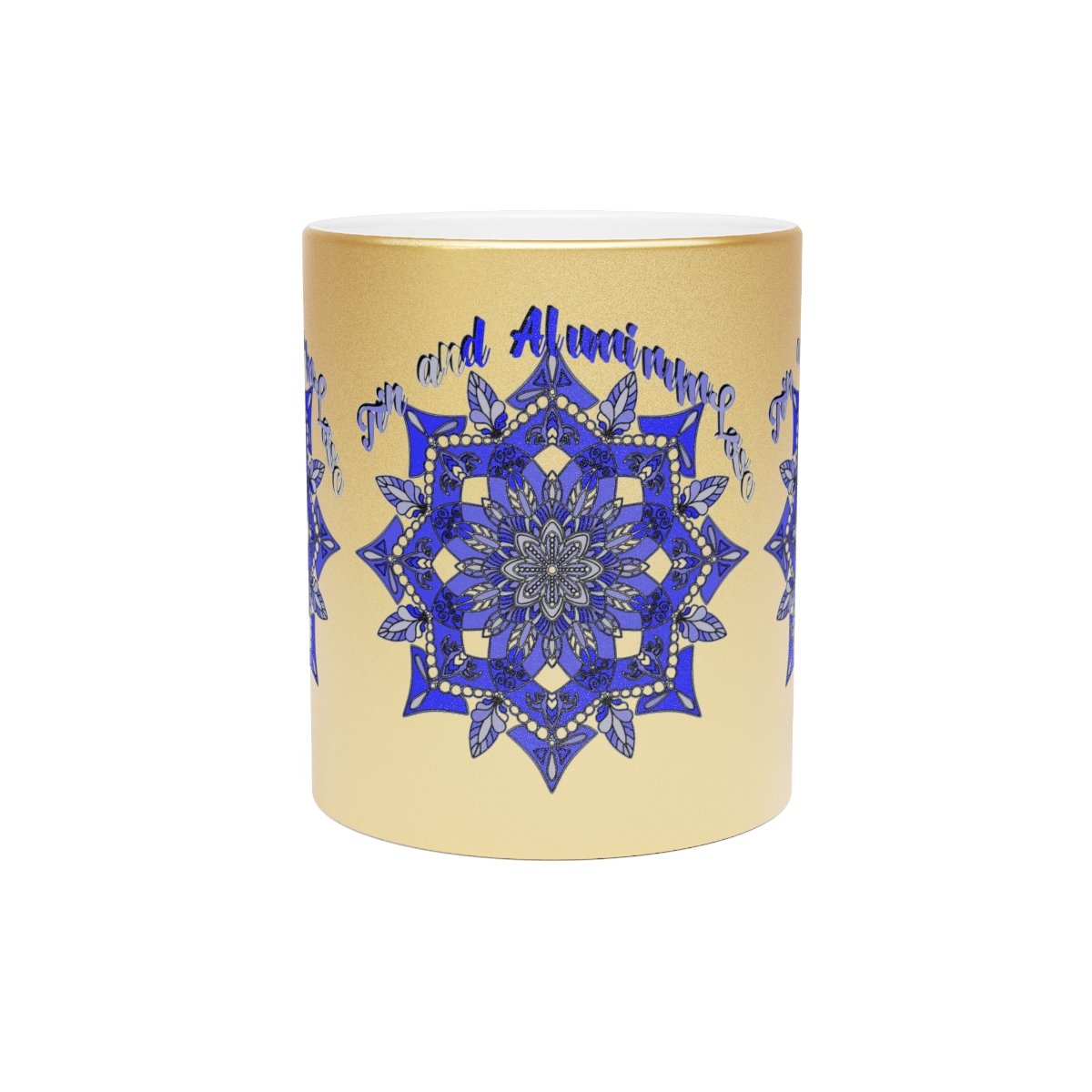 10th Anniversary Metallic Mug "Tin and Aluminum Love" - Hand Drawn Mandala Design in Gold & Silver | Perfect Tin/Aluminum Anniversary Gift