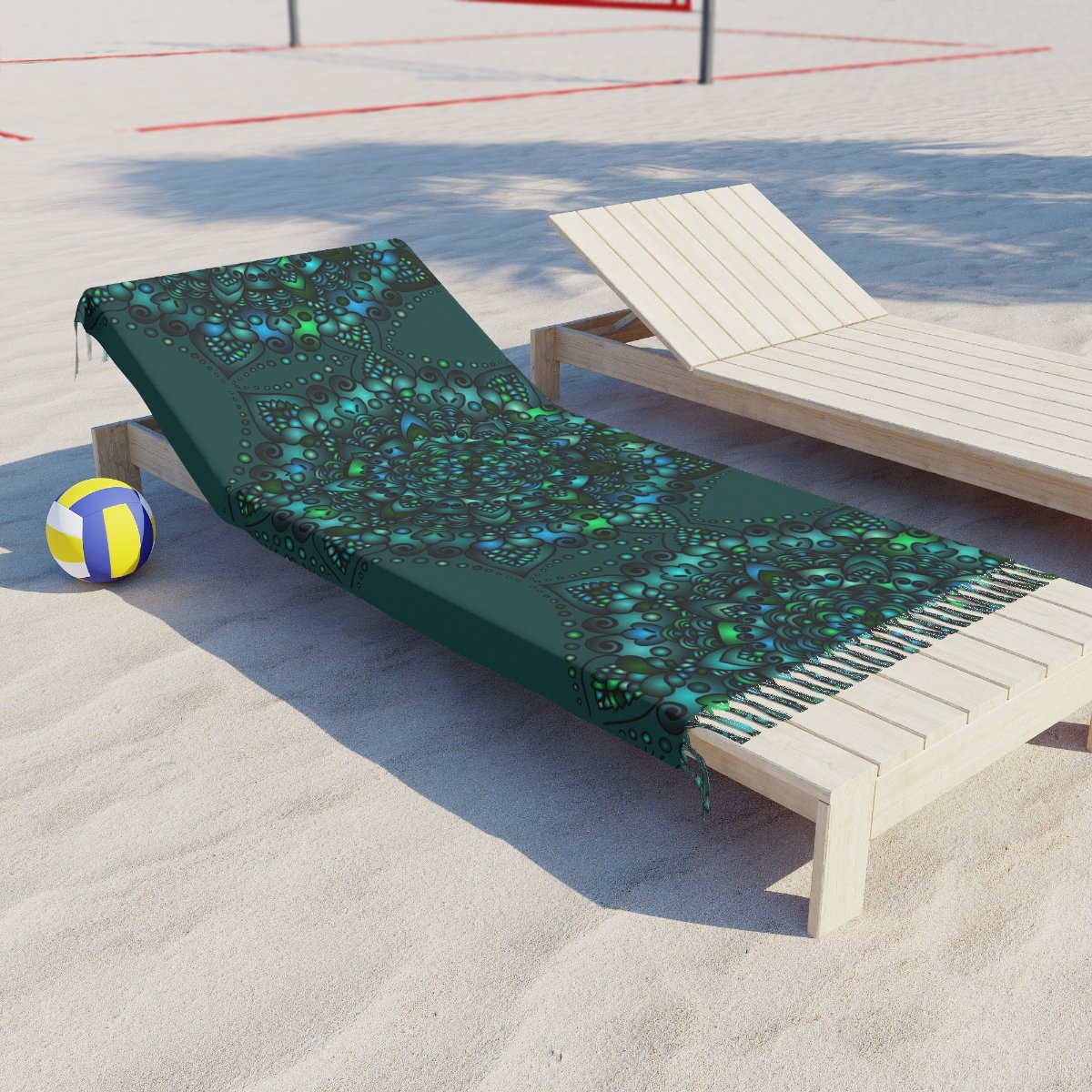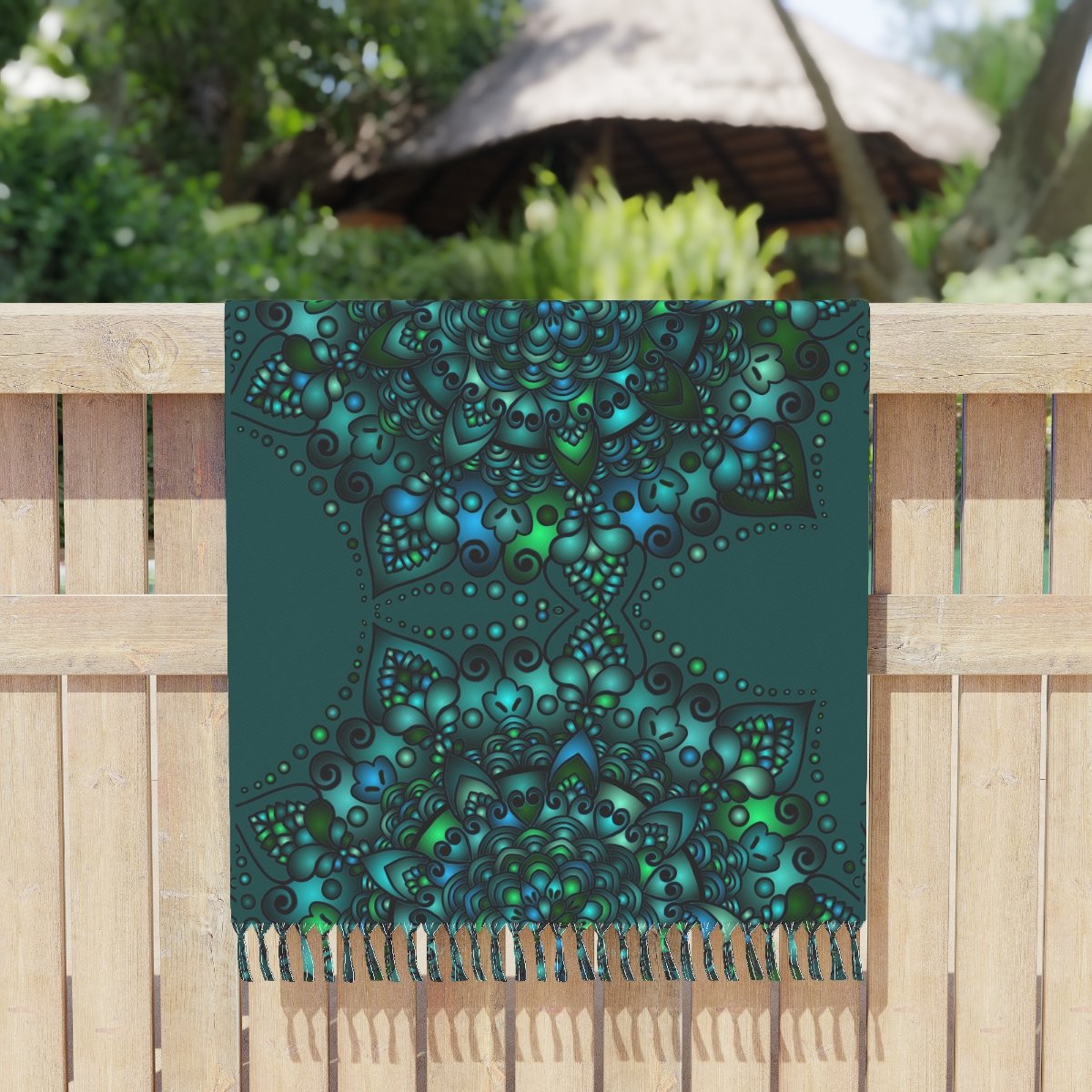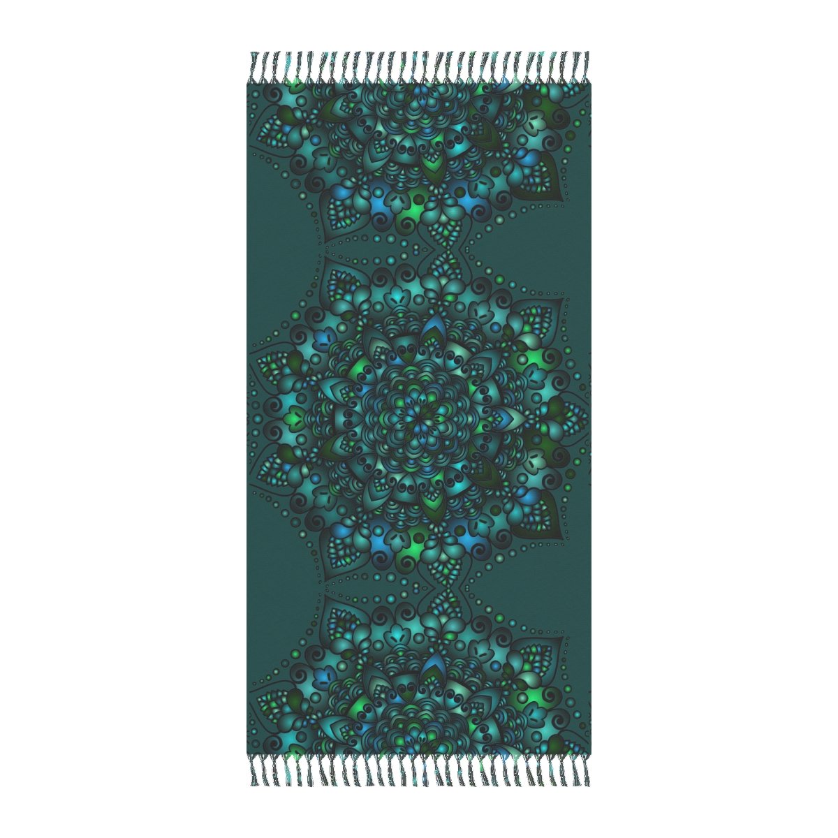 Copy of Boho Beach Cloth decorated with Mandala Art - Original Fine Art Hand-Drawn - Petroleum Green