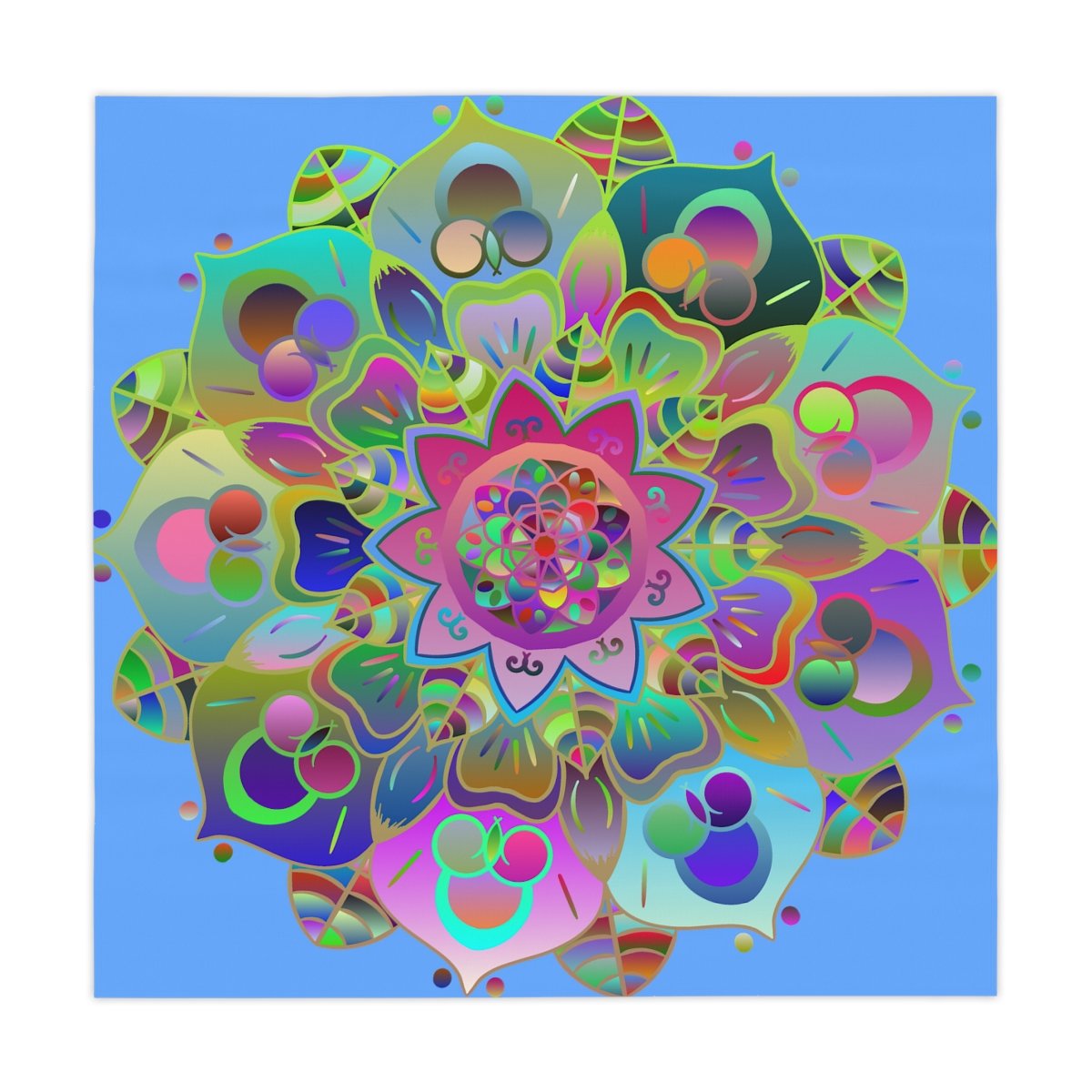 Tablecloth with Mandala Art Drawn by Hand, Light Blue, Square