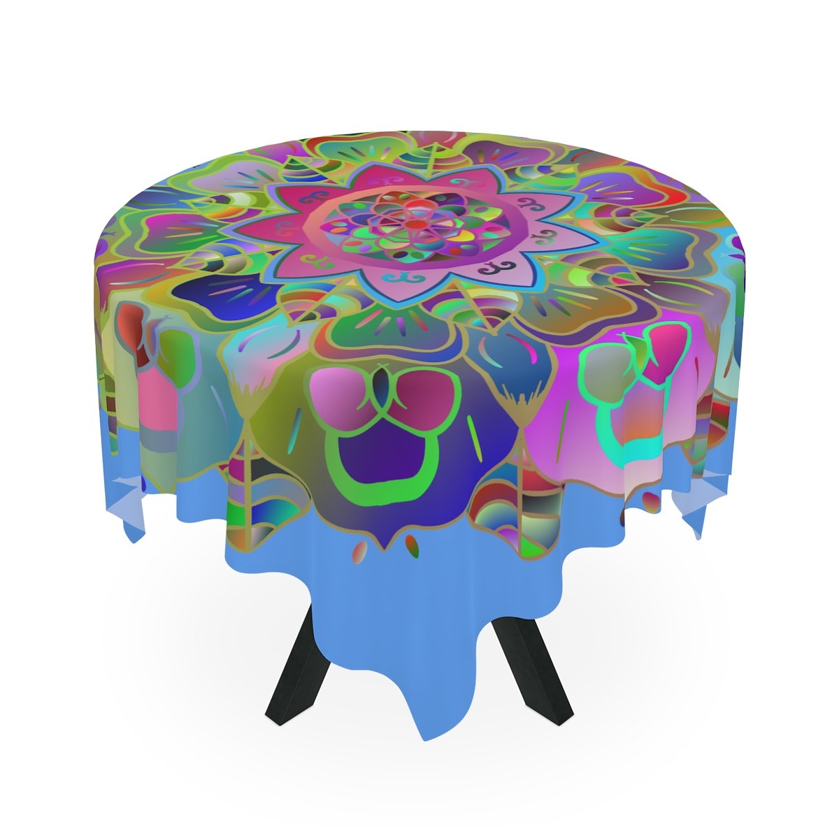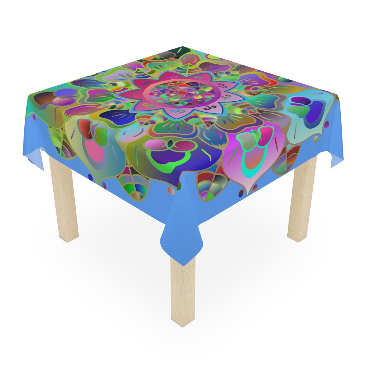 Uplift any home's aesthetics with this personalized tablecloth. Each Mandala Art is Drawn by Hand. Measuring in at 55.1" by 55.1", this personalized table cloth is a full-print product. What's more, the 100% polyester fabric construction makes it effortless to maintain like new.