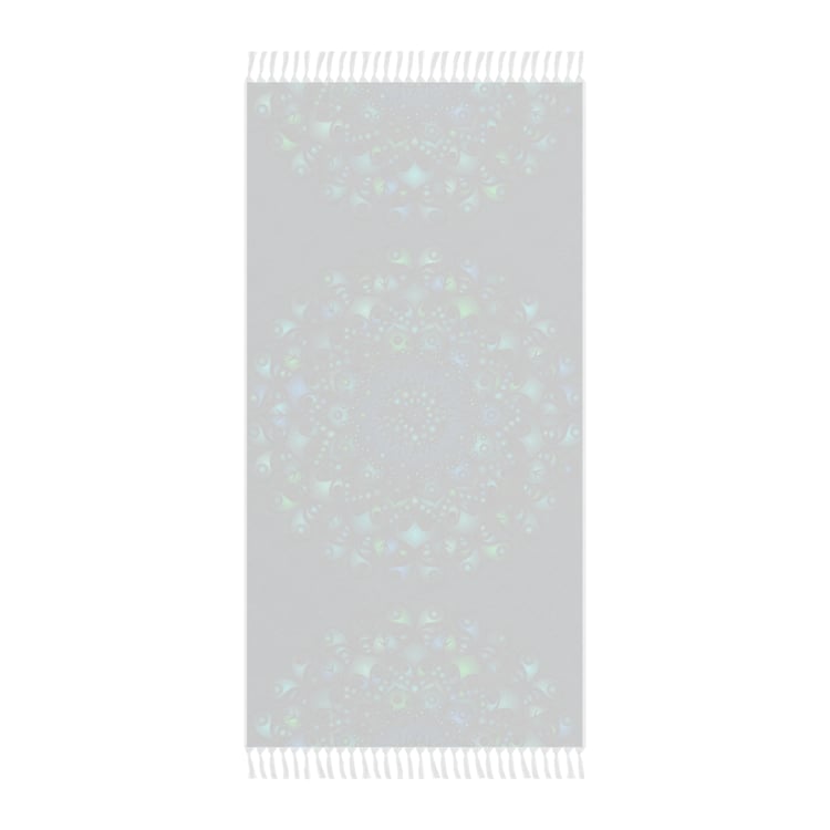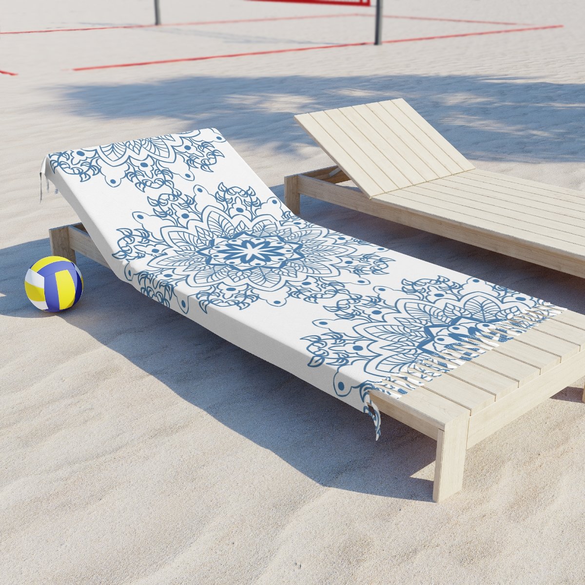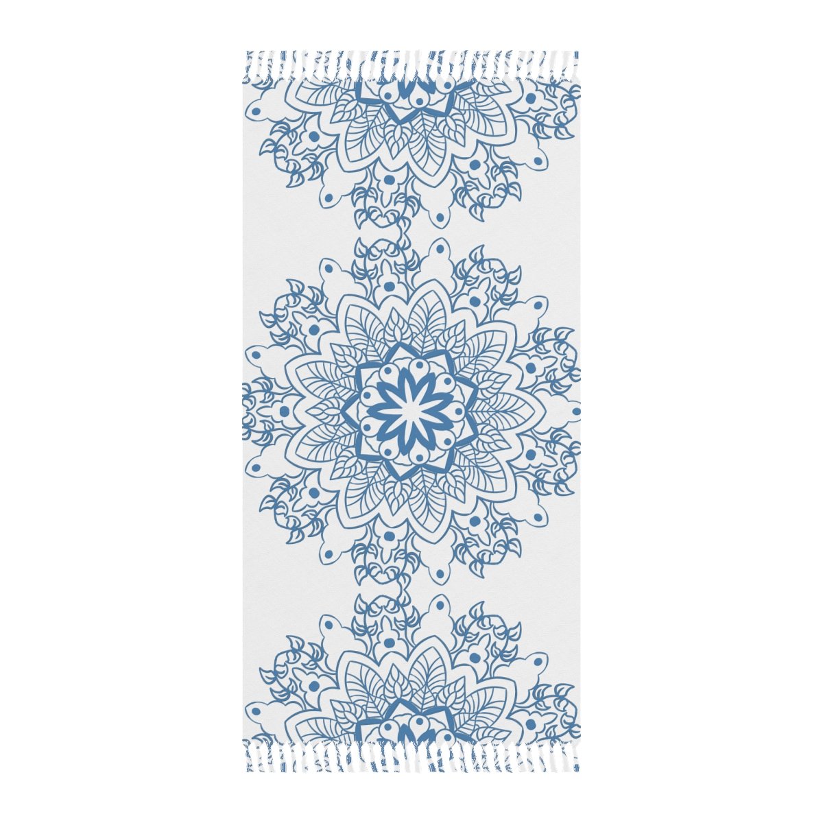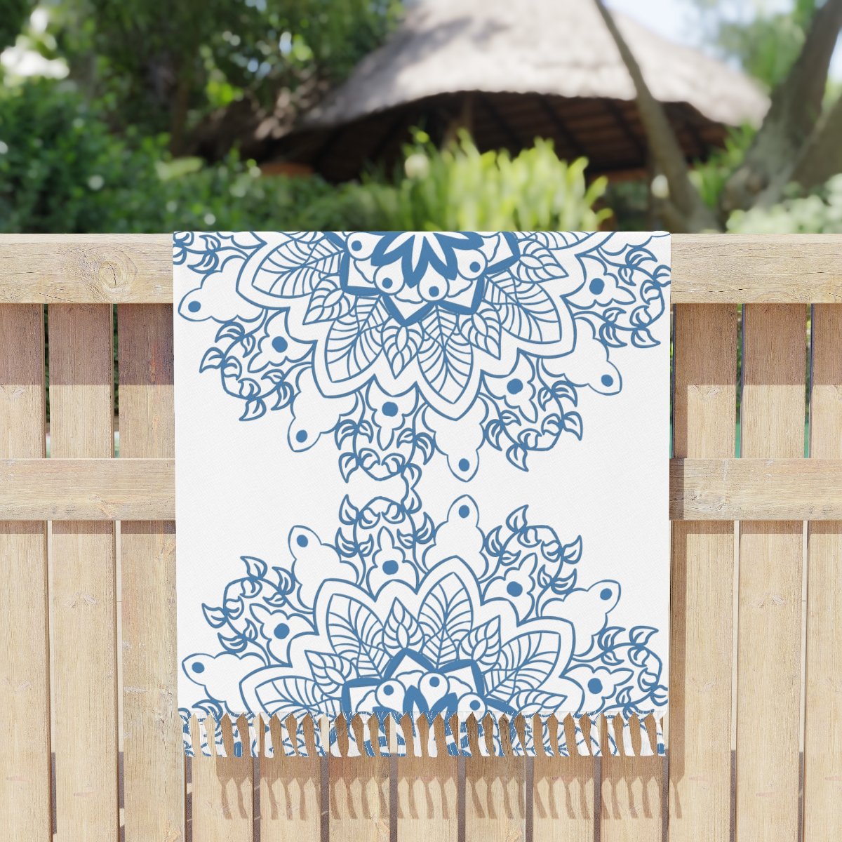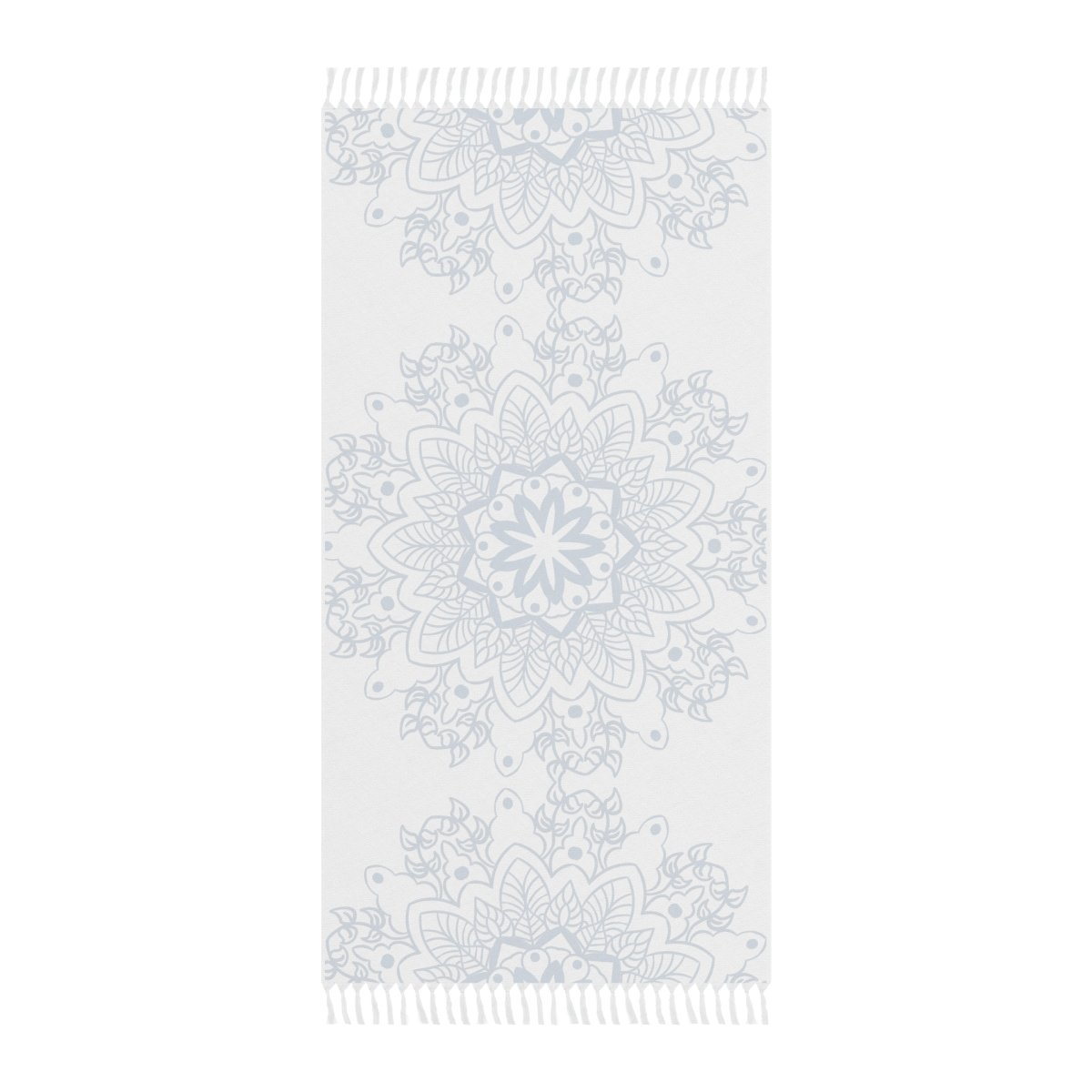 Boho Beach Cloth decorated with Mandala Art - Steel Blue - Original Fine Art Hand-Drawn - White