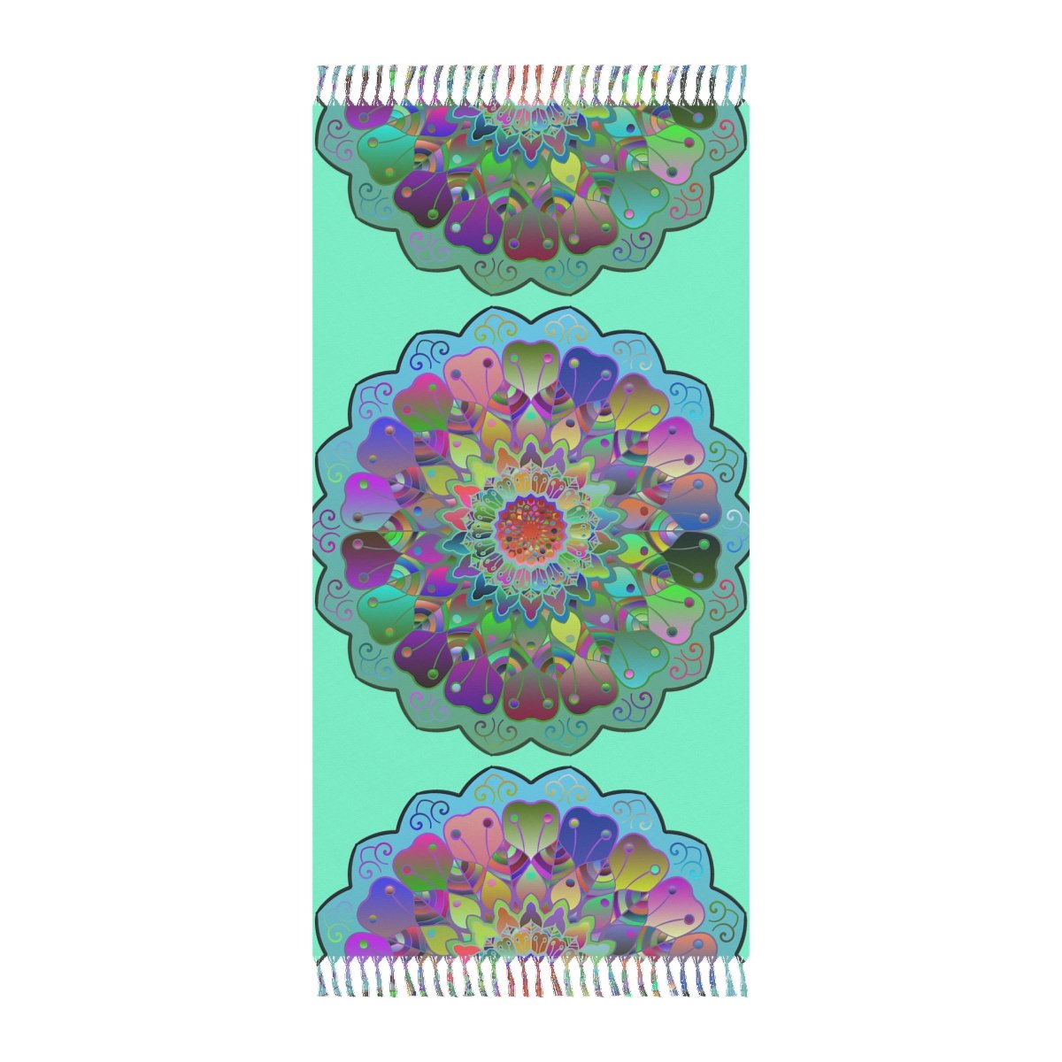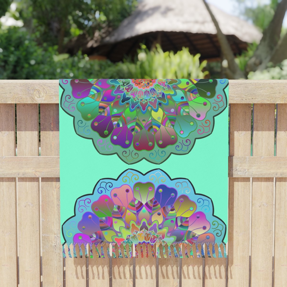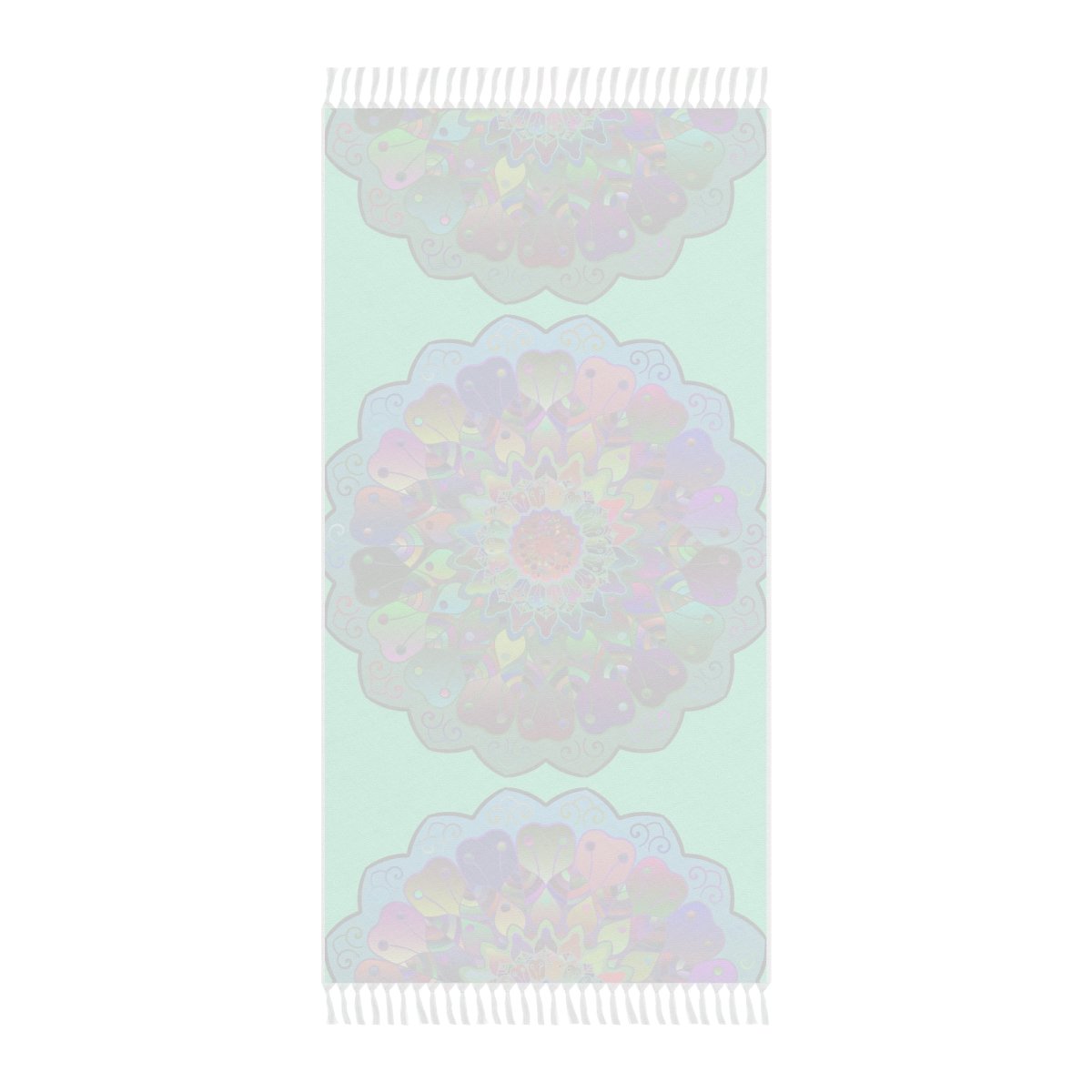 Boho Beach Cloth decorated with Mandala Art - Original Fine Art Hand-Drawn - Aquamarine