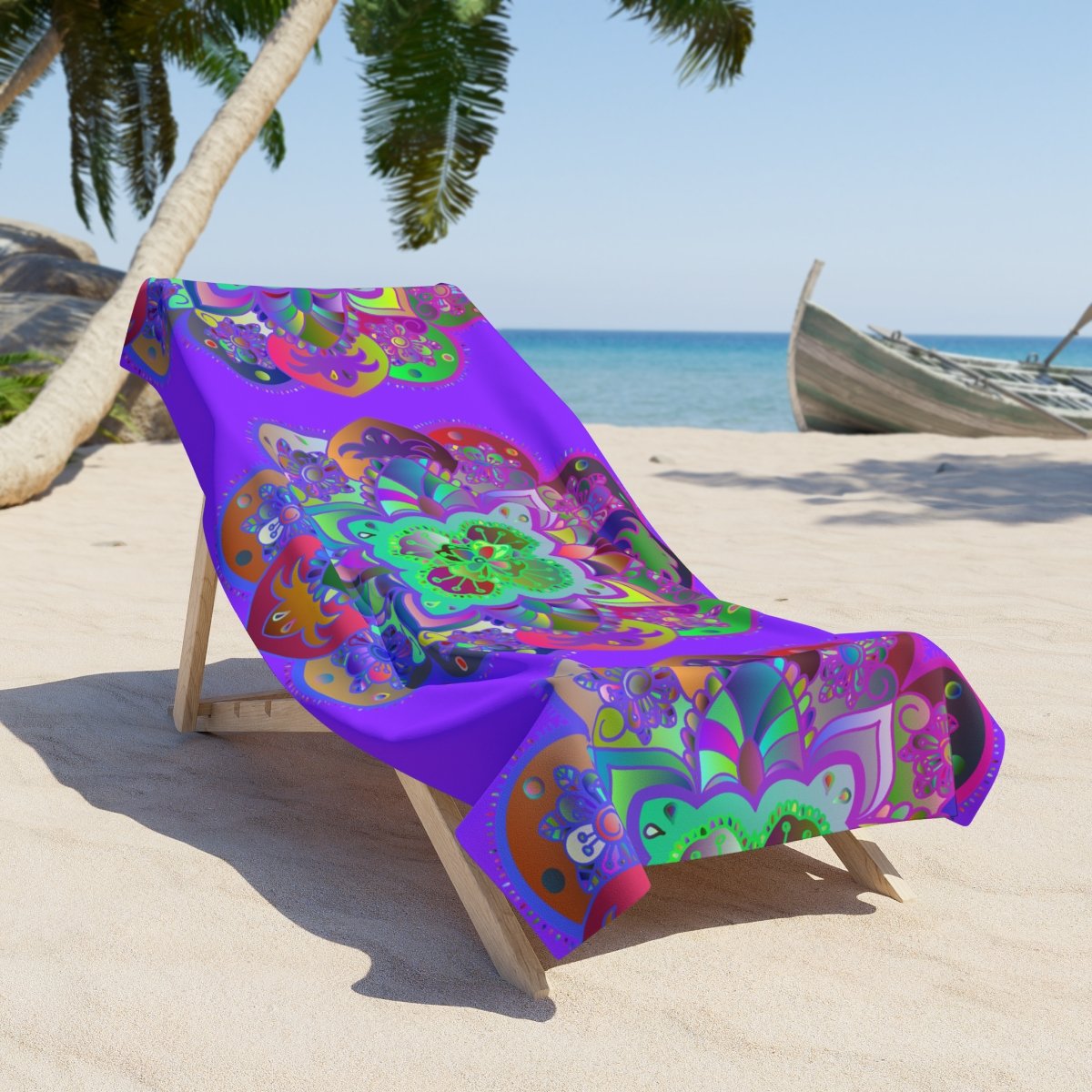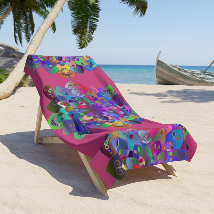 Experience beach days with an extra touch of luxury with our customized beach towel, featuring super colorful, hand-drawn mandala designs printed to perfection. This heavyweight towel brings a blend of comfort and durability, making it an essential accessory for your sunny outings.