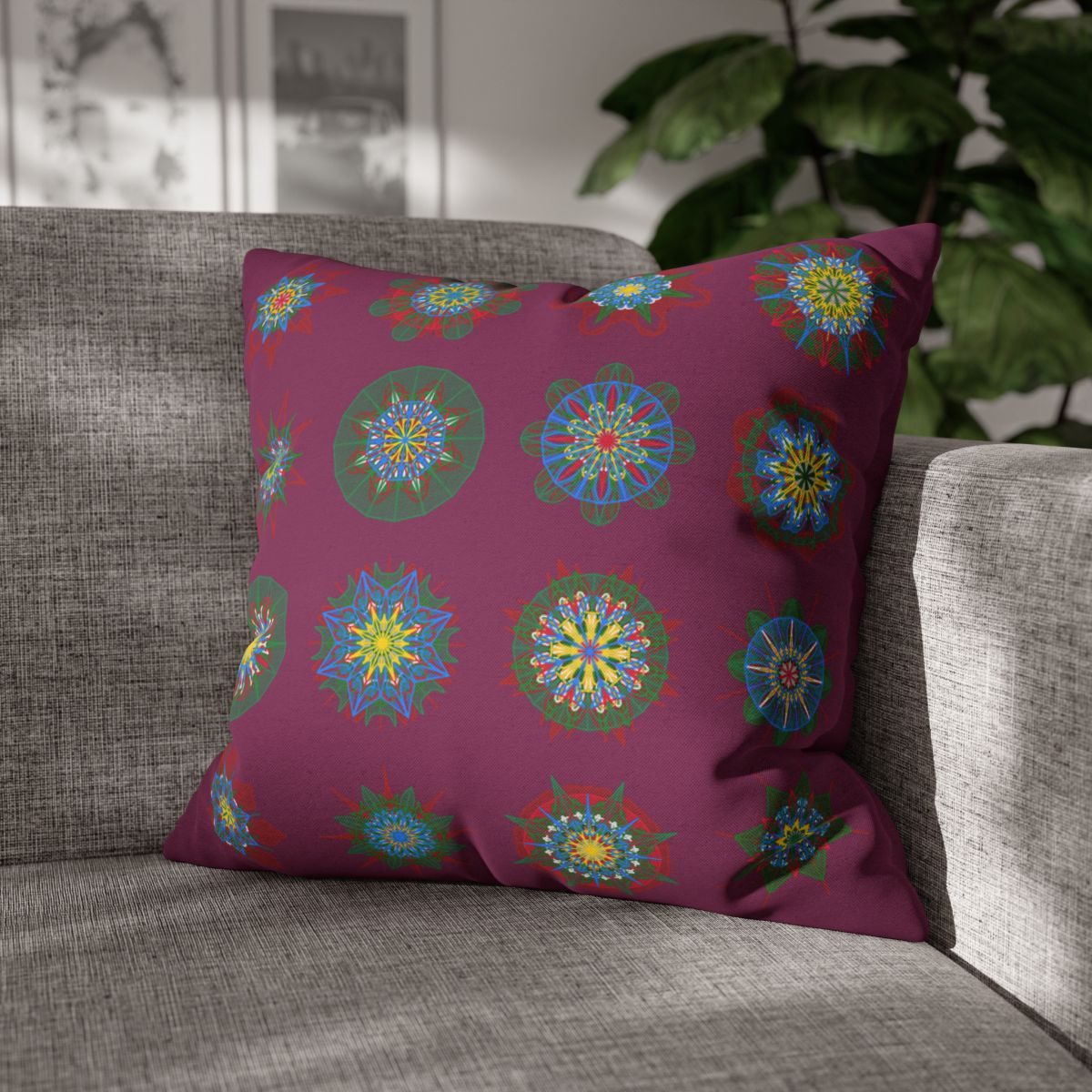 Christmas pillowcase for bed - Spun Polyester Square Pillowcase Mandala Art - Original Fine Art - Hand-drawn, Dark Raspberry
