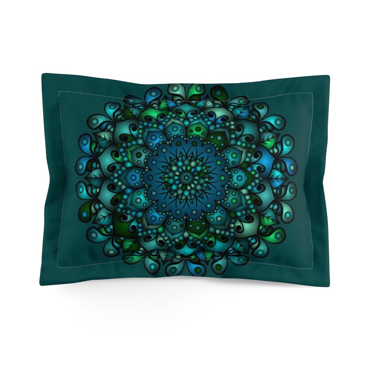 Microfiber Pillow Sham - Green Mandala Art Hand-Drawn on Dark Petroleum Green background