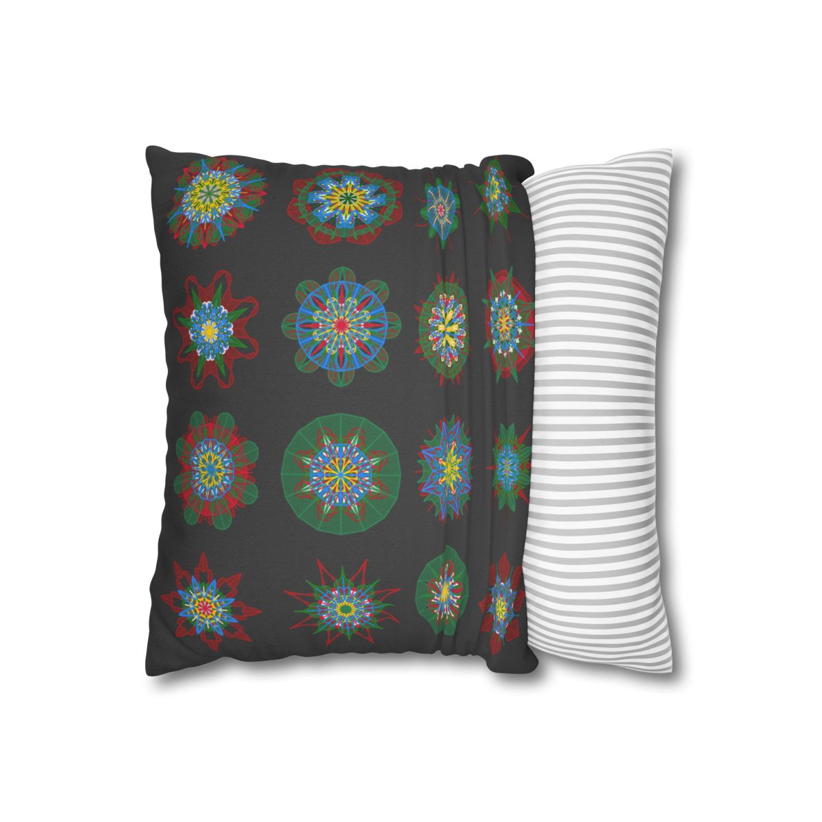 Christmas pillowcase for bed - Spun Polyester Square Pillowcase Mandala Art - Original Fine Art - Hand-drawn, Dark Gray