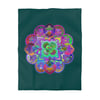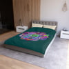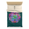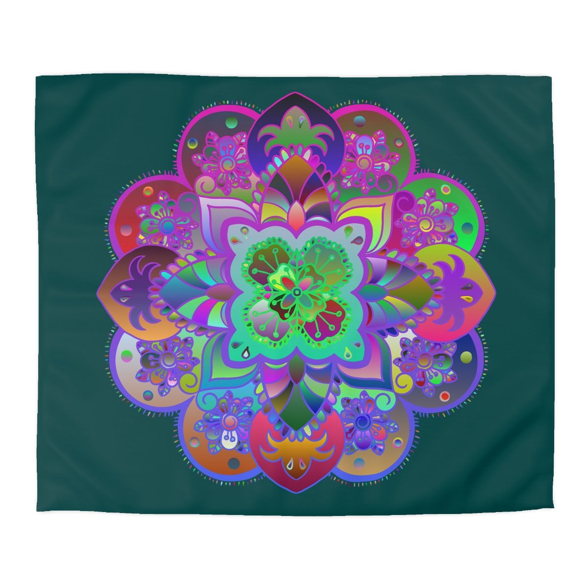 Microfiber Duvet Cover Mandala Art Drawn by Hand - Colorful Mandala on Dark Petroleum Green background