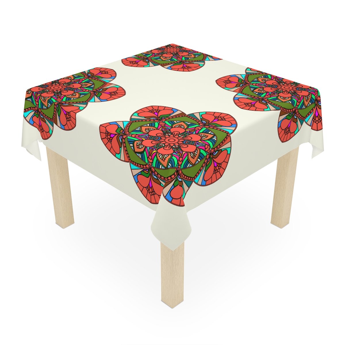 Tablecloth with Mandala Art Drawn by Hand, Ivory, Square