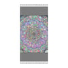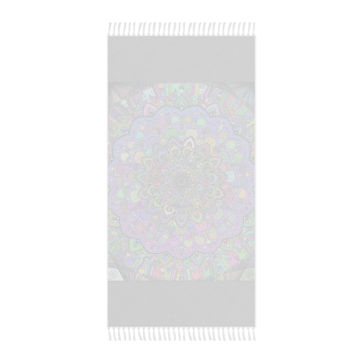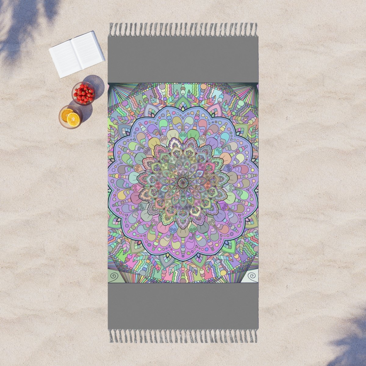 Beach Cloth decorated with Mandala Art - Original Fine Art Hand-Drawn - Light Gray, Pastel Colors