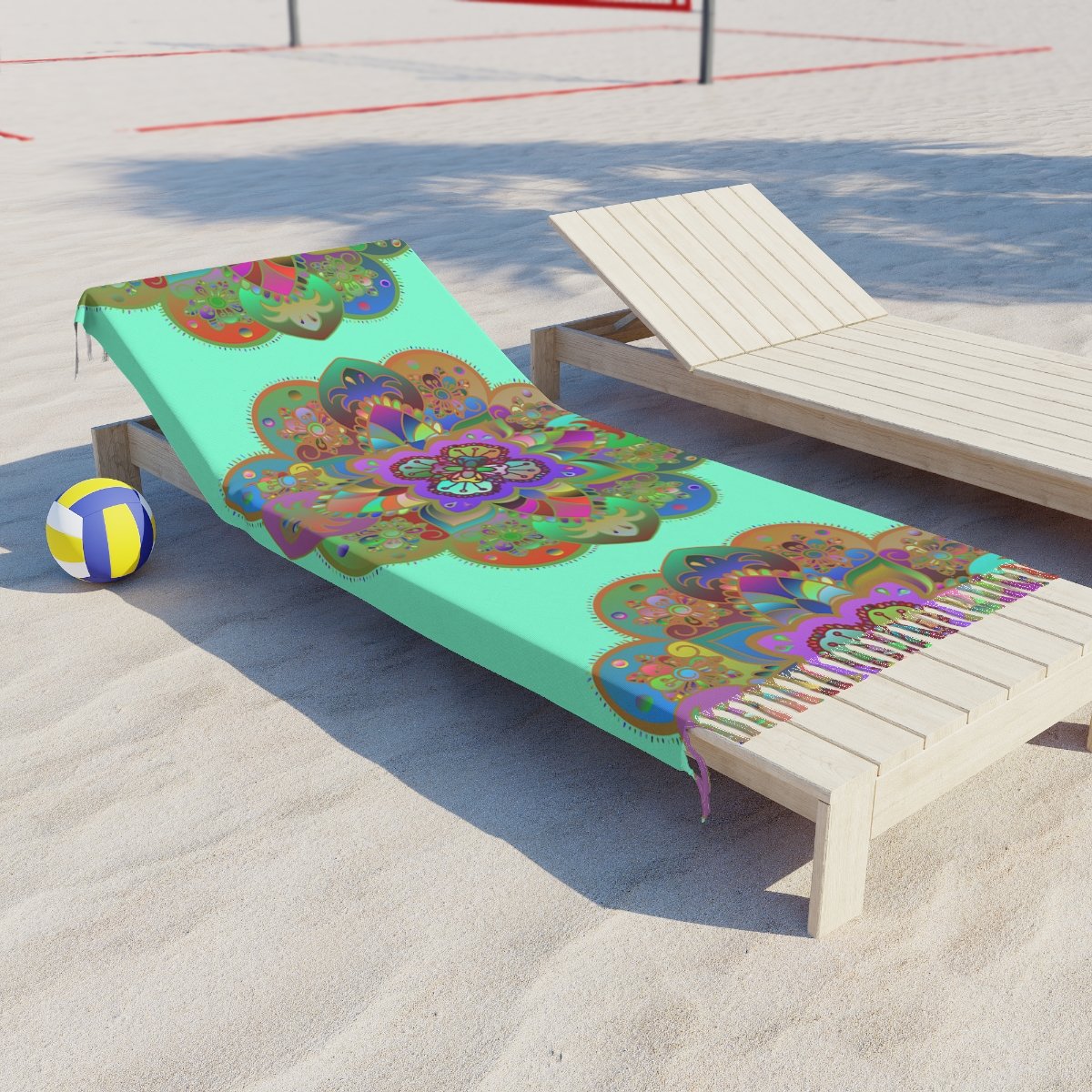 Boho Beach Cloth decorated with Mandala Art - Original Fine Art Hand-Drawn - Aquamarine