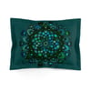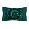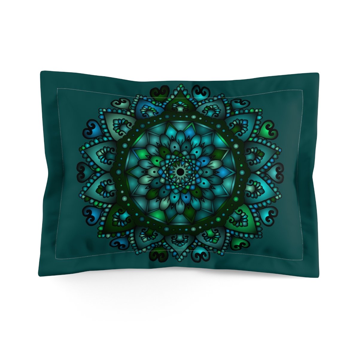 Microfiber Pillow Sham - Green Mandala Art Hand-Drawn on Dark Petroleum Green background