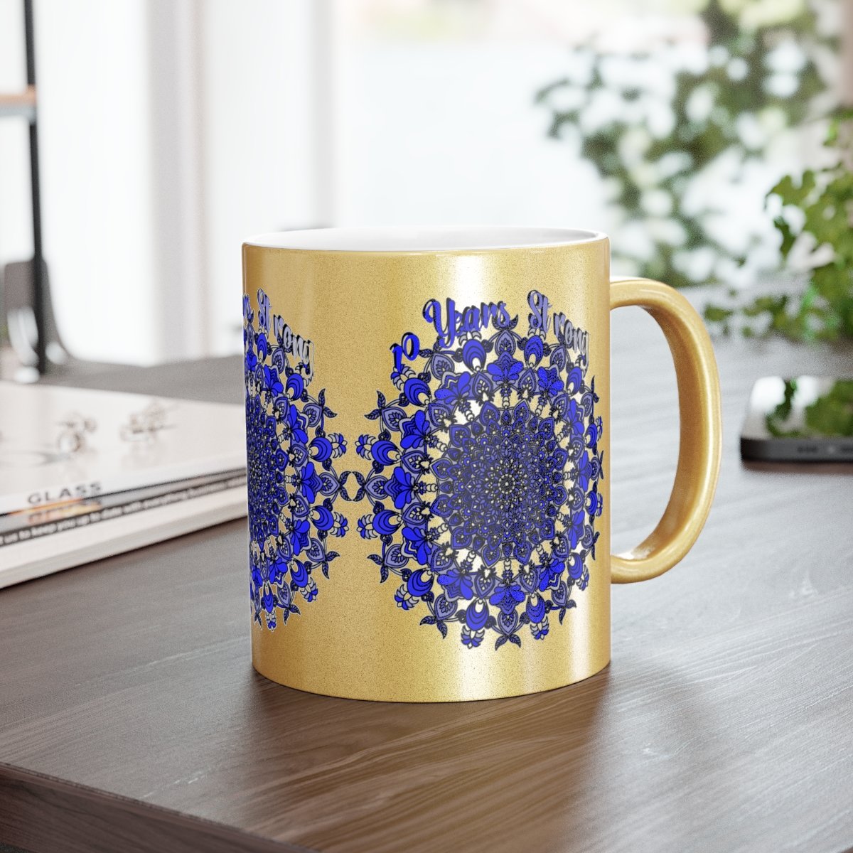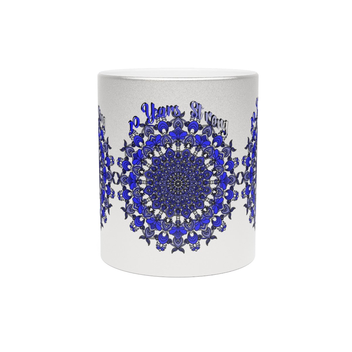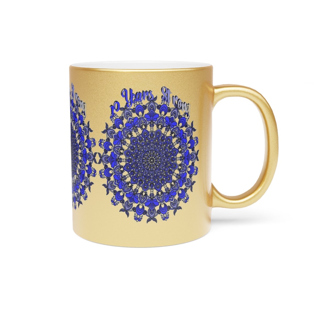 10th Anniversary Metallic Mug "10 Years Strong" - Hand Drawn Mandala Design in Gold & Silver | Perfect Tin/Aluminum Anniversary Gift